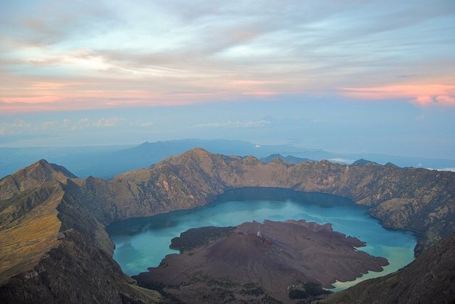 Mount Baru Jari (Baru Jari Volcano) rising from the eastern side of the caldera